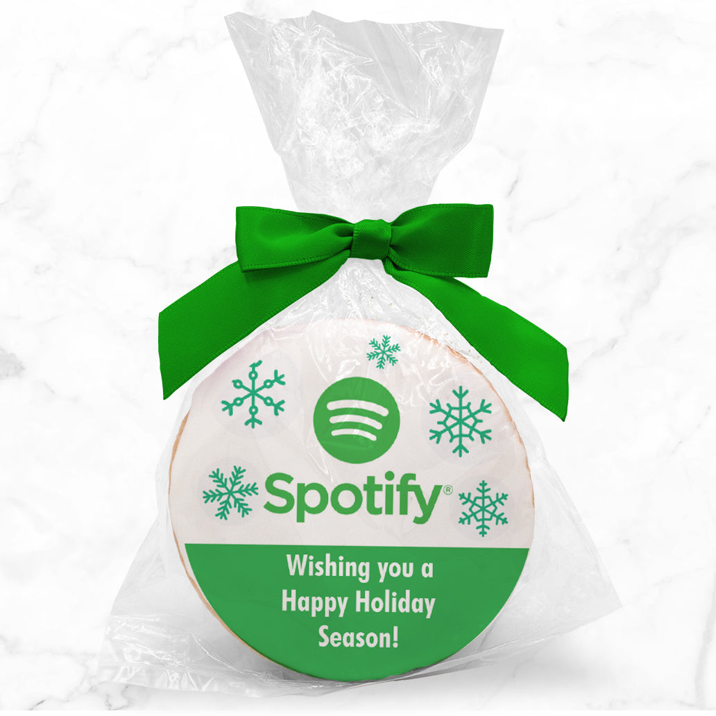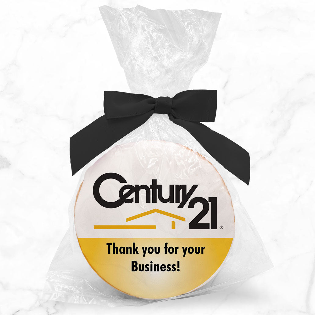 Logo Upload & Message - Personalized Direct Print On Round Sugar Cookie w/ Gift Bag & Matching Bow