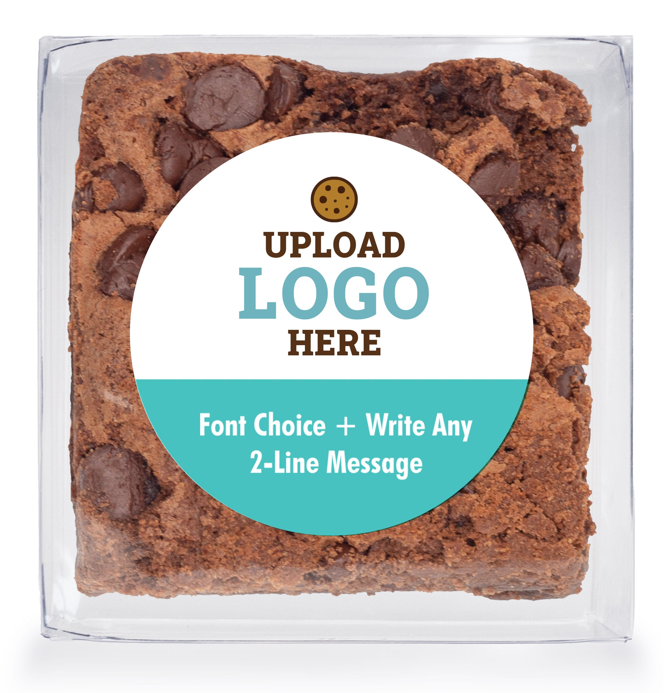 Logo Upload & Message w/ Color Choice - Chocolate Chip Fudge Brownies W/Full Color Personalized Sticker