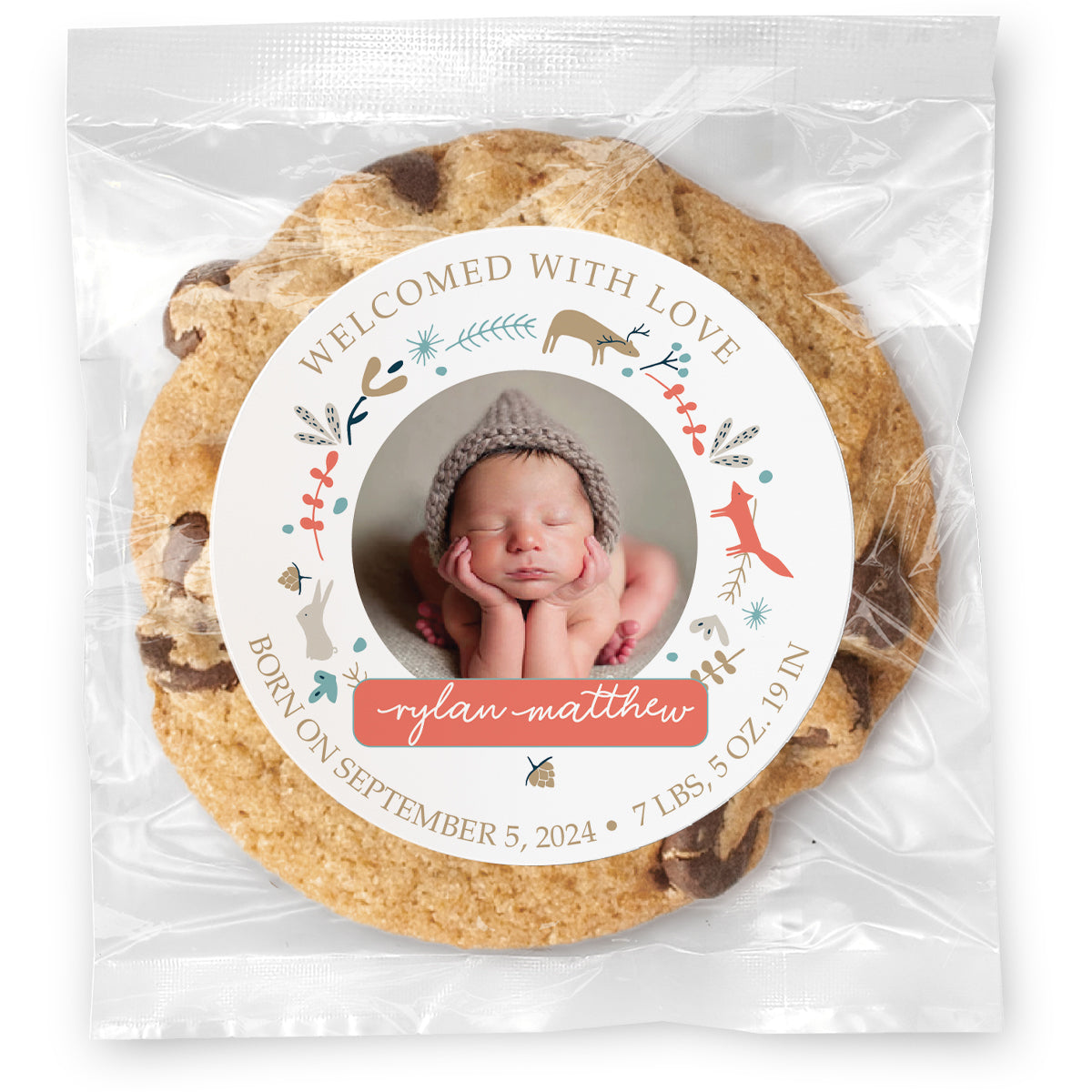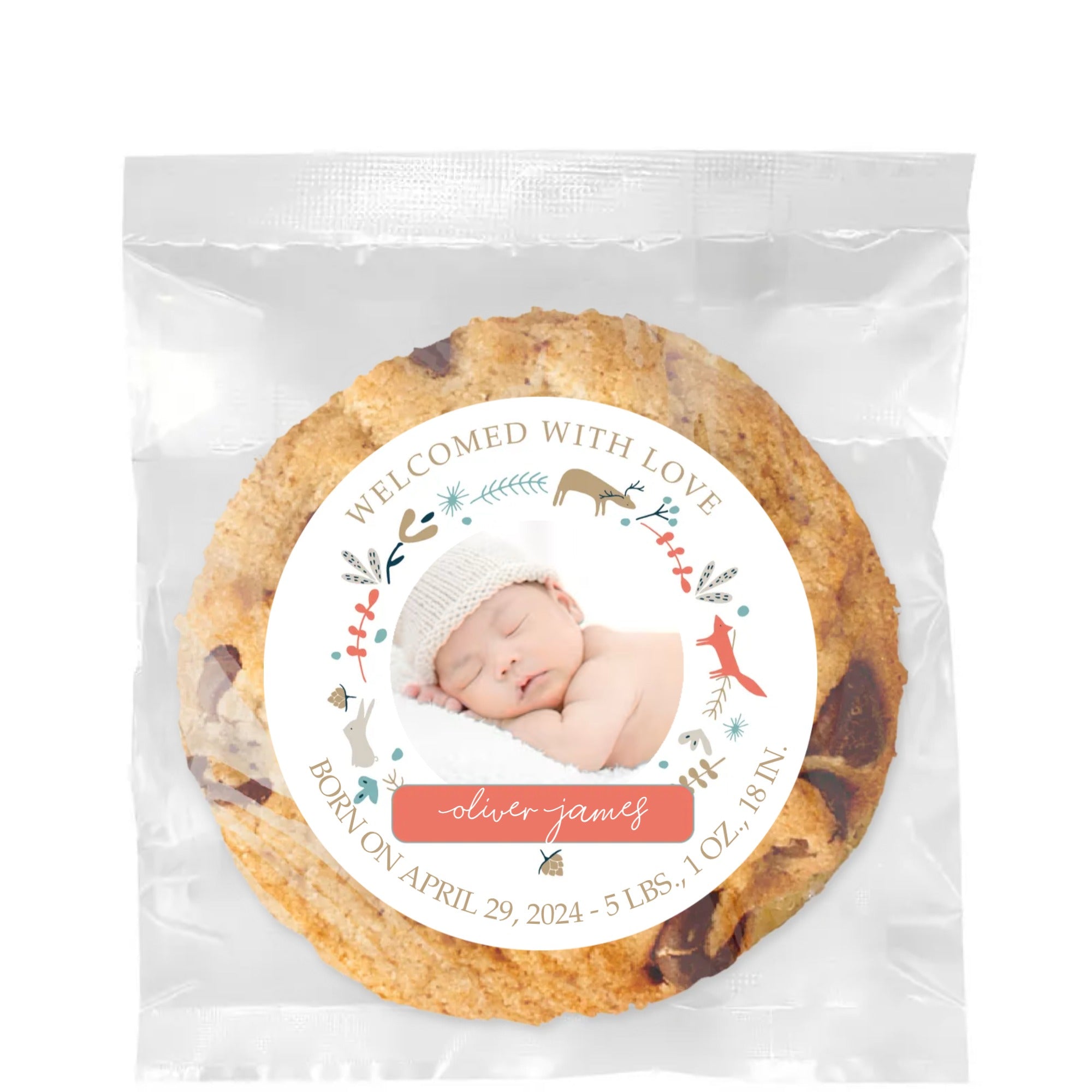 Welcomed with Love Woodland Animals - Gourmet Cookie w/ Full Color Personalized sticker